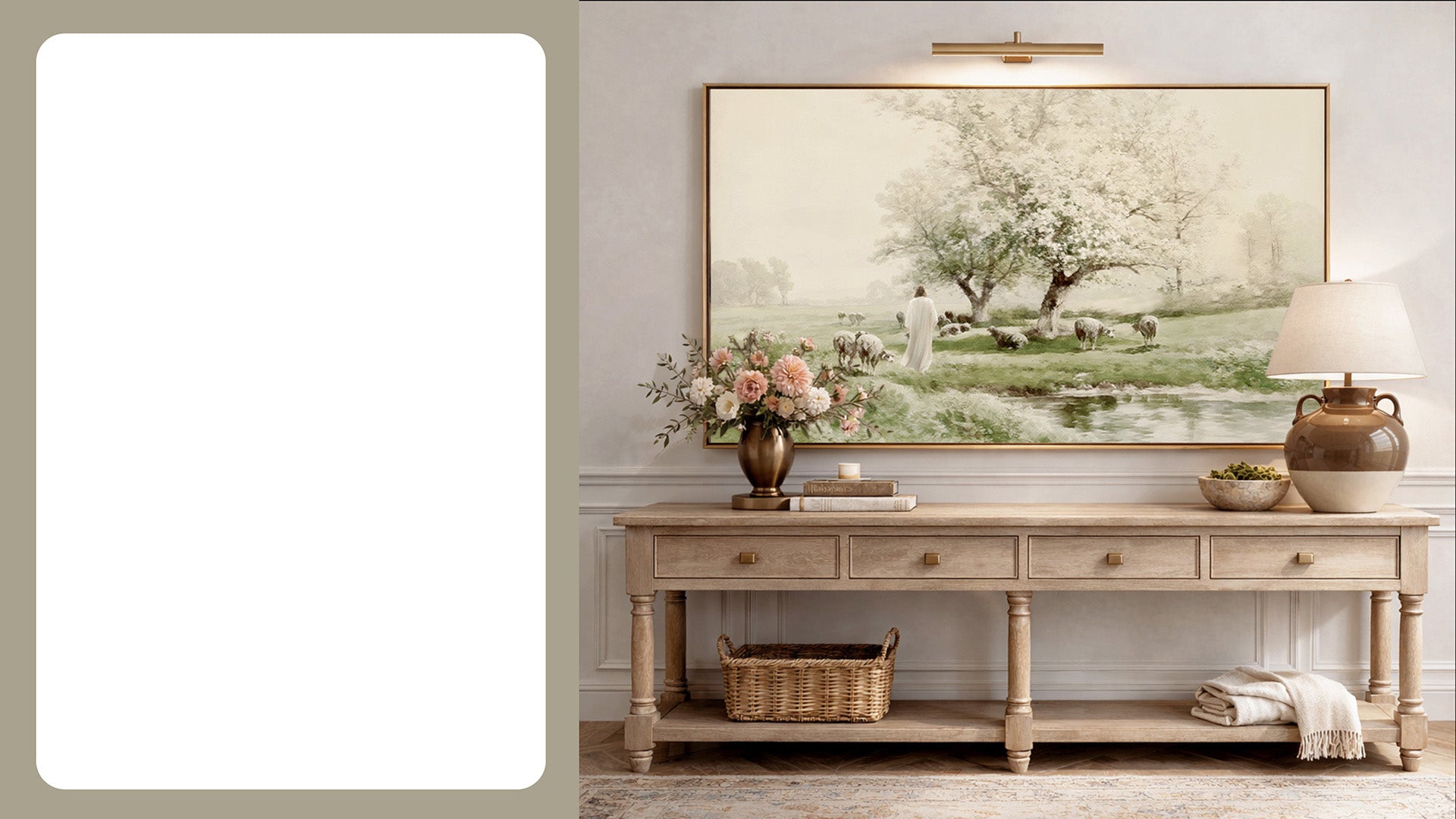 Thanks so much for being here! My journey of starting Light Your Home started when I first got married in 2019, I was looking to purchase a picture of Christ and was shocked at how much money it was and frustrated that there wasn't an affordable option for everyone. So I got to work to give everyone just that, affordable, beautiful Christian art! Each image is created through a melting pot of creativity and steps from photography to digital creations!